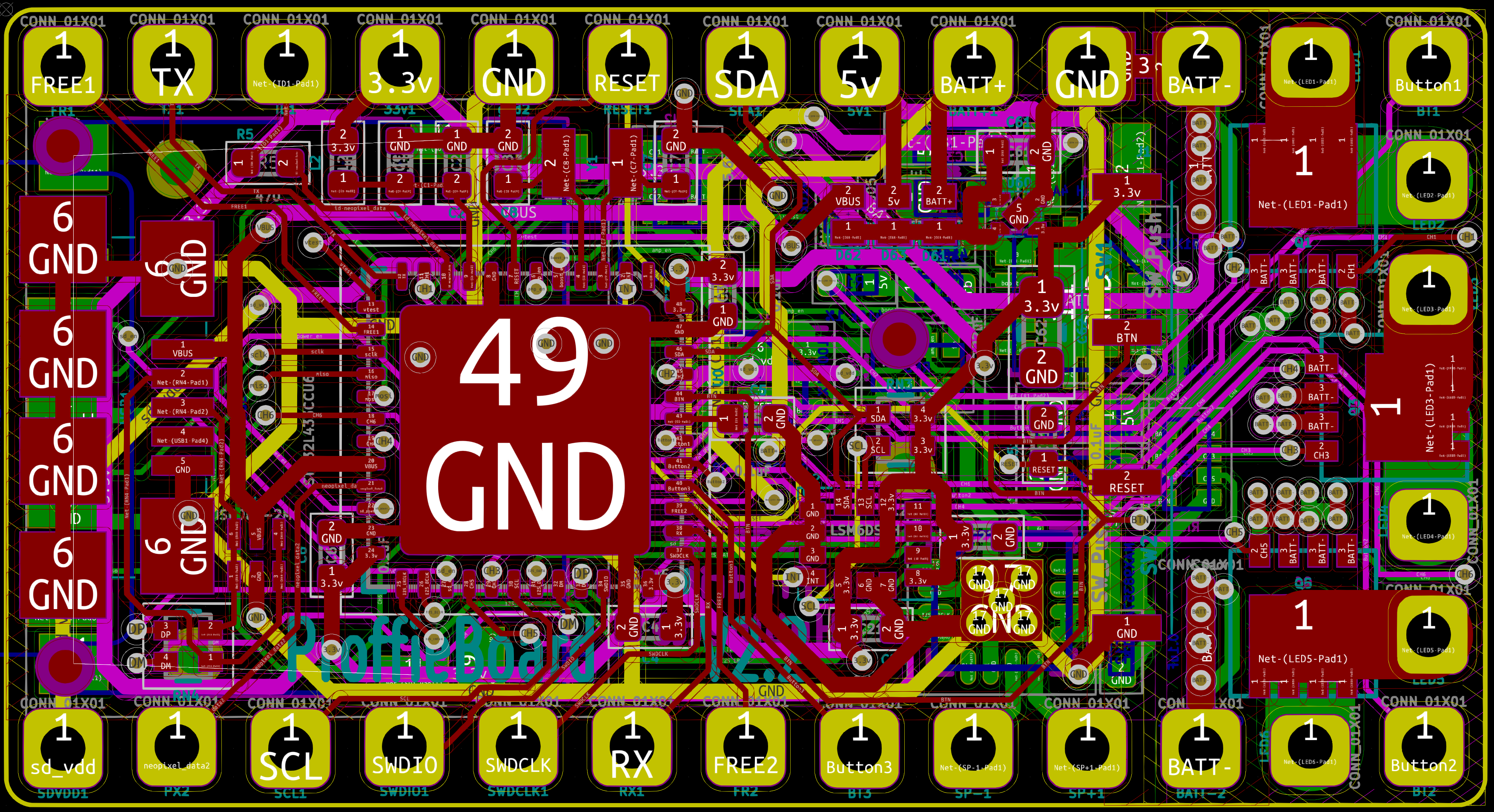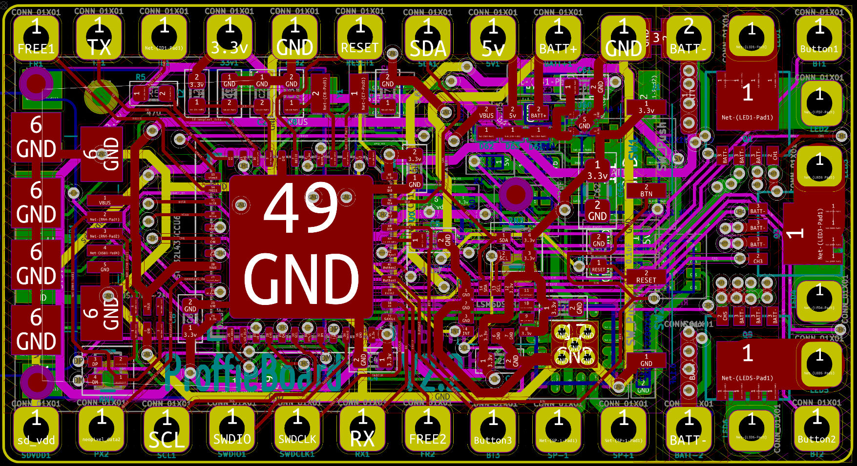 Follow this handy guide for how to put the top side together. Note that the markings on the board are not great for locating where to put the components, so I recommend loading up the design in kicad and printing out something that shows where all the components should go. Once the top side is done, you can test the USB, CPU, motion and three of the FETs before continuing. Using a skillet will probably not work for the bottom side though, instead you need to use a hot-air solder station to melt the solder after the components have been placed.