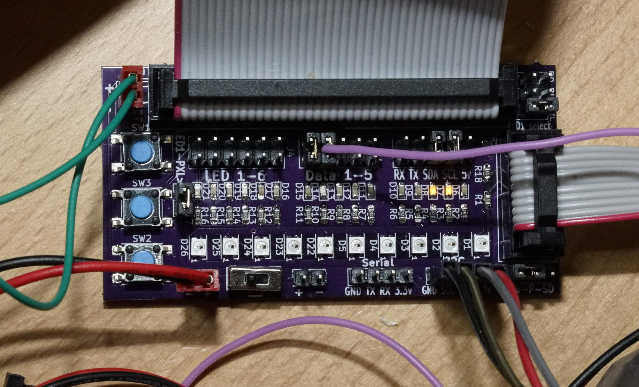 - D1 select: These three jumpers lets you decide what is hooked up to data 1. PU = 10k pullup, PD = 10k pulldown, PXL = pixels